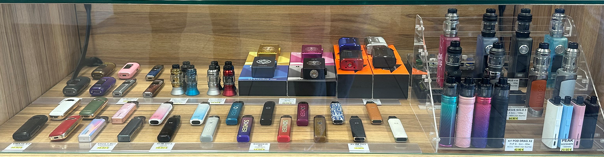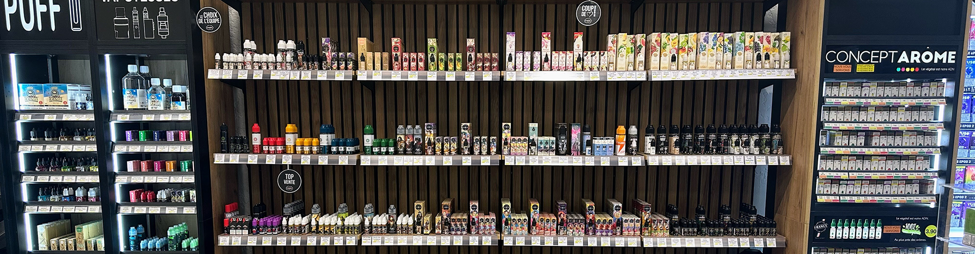 Sur une surface de 200 m2, nos conseillers sont à votre écoute pour vous aider et vous accompagner de façon personnalisée dans la recherche du matériel et du e-liquide correspondant à votre demande.
